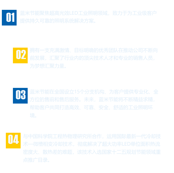 蓝米节能聚焦超高光效LED工业照明领域,致力于为工业级客户提供持续可靠的照明系统解决方案。 服务客户遍布国内重工业、机械制造、军工、铁路、钢铁、电力、冶金、食品、电子等行业。公司所有产品通过国家强制性3C认,为广大客户提供优质、稳定、可靠的服务体验。